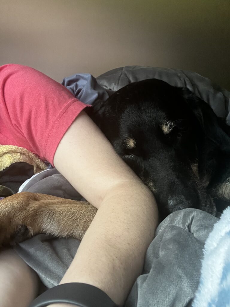 I’m most thankful for him when Dan is away at the farm. He keeps me company and helps keep me safe. I let him sleep in the bed with me when Dan is gone, and he snuggles as close to me as he can. Sometimes he’s a bit of a bed hog, but when I wake up in the middle of the night and he’s still snuggled up to me, it makes me smile. He’s the best boy.